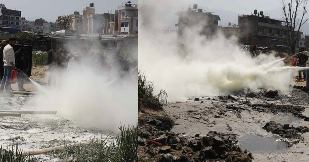 आज (मंगलबार) बिहान बोरिङको लागि पाइप गाड्दा ग्यास निस्किएर आगो लागेको थियो। करिब तीनसय मिटर खनिसकेपछि बिहान साढे ९ बजेतिर उक्त ग्यासमा आगो निस्केको थियो। अहिले आगो नियन्त्रणमा लिइसकिएको छ। स्थानीय बासिन्दा र सुरक्षाकर्मीको टोलीले करिब १२ बजेतिर नियन्त्रणमा लिएको हो । स्थानीयले हिलो र पानी छ्यापेर आगो निभाउने प्रयास गरिरहँदा फायर स्टेङ विसरको सहयोगमा निभाइएको हो ।
