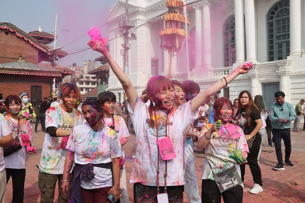 विश्व सम्पदा सूचीमा सूचीकृत दरबार क्षेत्रमा स्वदेशी तथा विदेशी पर्यटक रङ खेलेर रमाउँदै छन् ।